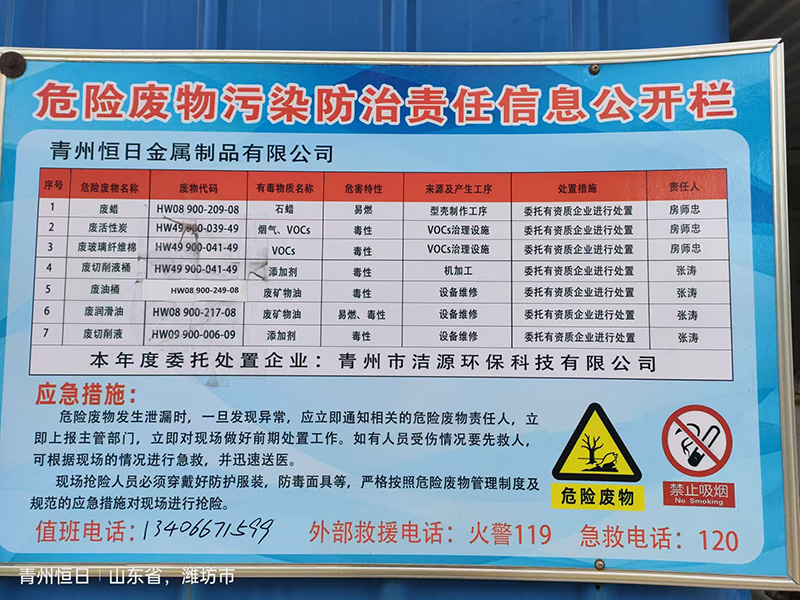 2024年青州恒日金屬制品有限公司危險廢物污染環境防治信息公示